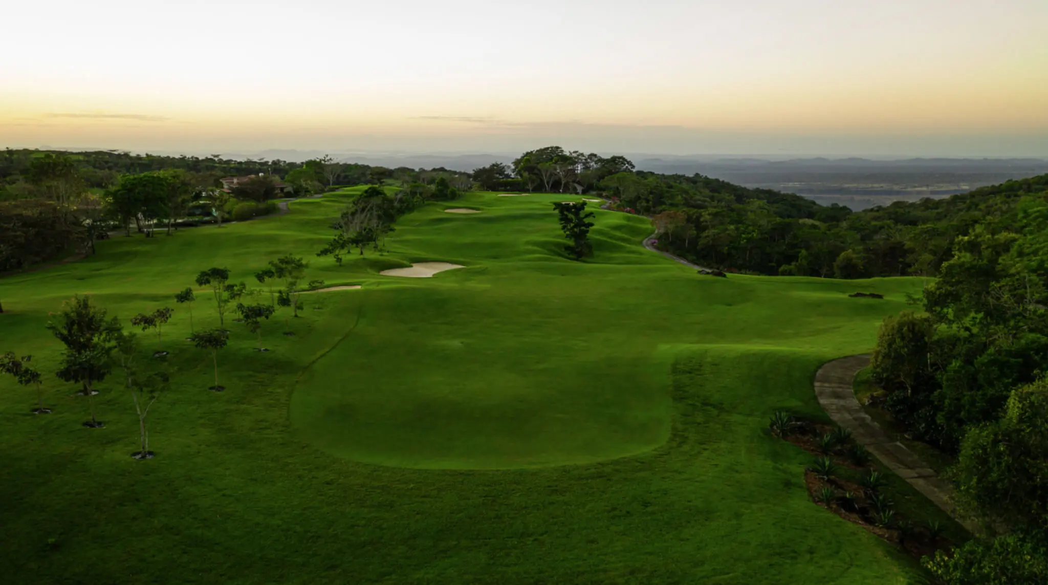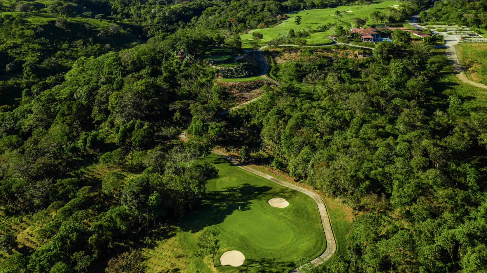 While playing each unique hole of the 18-hole adventure, the golfer can experience the beauty, vastness and richness of the Panamanian tropical highlands……from holes on the highest ridges with ‘forever’ views of Volcan Baru, to the lower, verdant jungle holes enveloped in lush greenery and abundant wildlife, to the holes cascading down the slopes through the Lucero coffee plantation.”